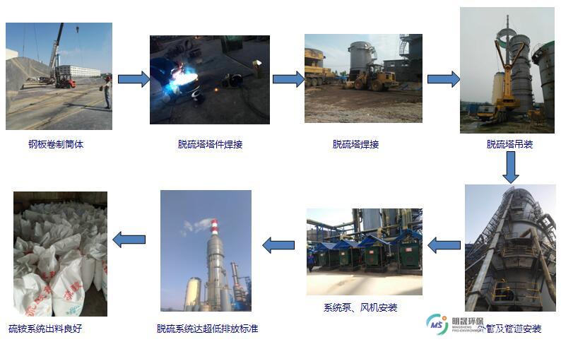 本次河北東光化工2×120t/h三廢鍋爐配套煙氣脫硫工程采用EPC總承包方式,采用氨法脫硫工藝,保證實(shí)際條件下,系統(tǒng)出口SO2、塵含量、氮氧化物達(dá)到超低排放標(biāo)準(zhǔn),氨逃逸小于≤7.6mg/Nm3,整個(gè)脫硫系統(tǒng)的設(shè)備、電氣、儀表控制的設(shè)計(jì)、設(shè)備及材料供貨、施工、安裝、調(diào)試、性能試驗(yàn)、培訓(xùn)等全部由明晟環(huán)保負(fù)責(zé)。